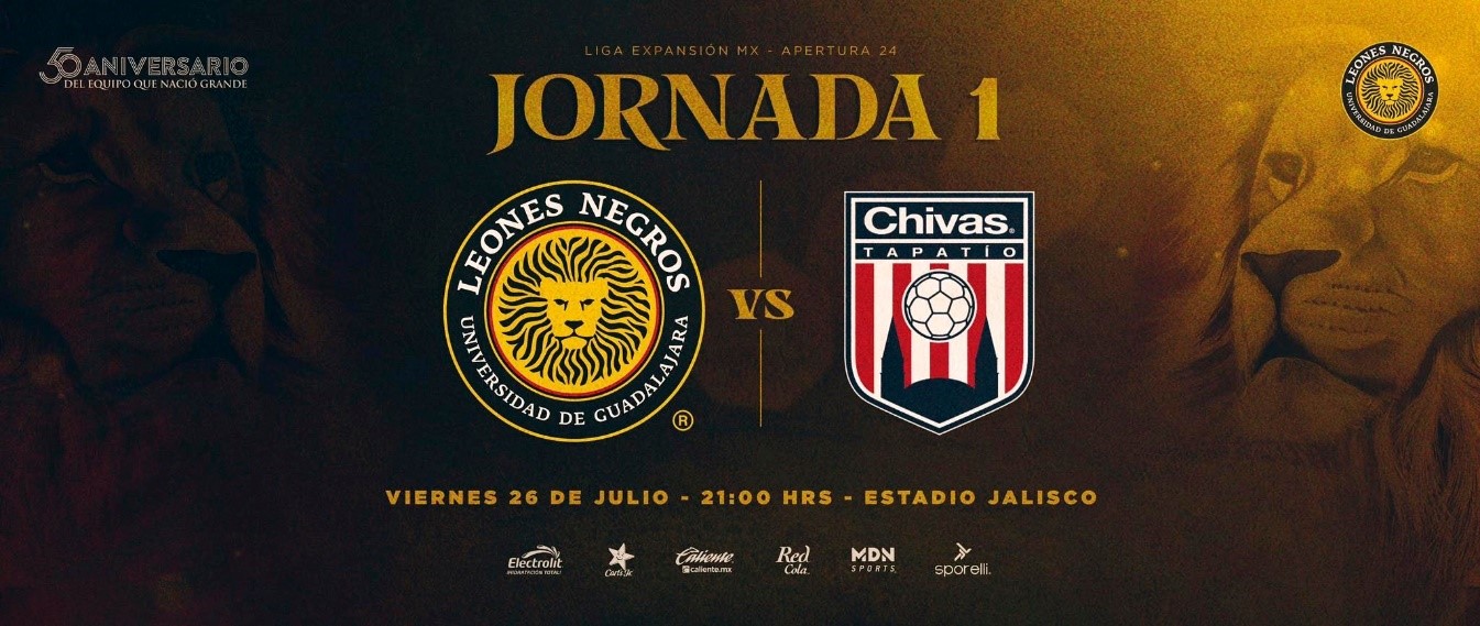 GUADALAJARA, Jalisco (22/Julio/2024).- No hay plazo que no se cumpla, ni fecha que no llegue y finalmente este viernes los Leones Negros de la Universidad de Guadalajara iniciarán su andar en el torneo en que conmemoran su 50 aniversario de su irrupción en el máximo circuito del futbol mexicano. El primer rival, será el Tapatío.