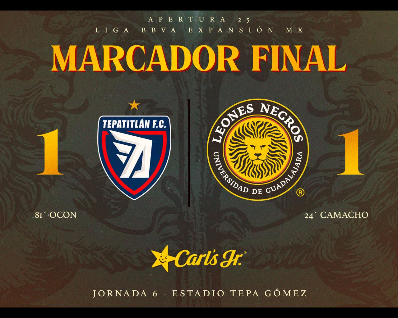 Amonestados: TEPATITLÁN – Diego Aguilar (32’); Orlando Ballesteros (90’) || LEONES NEGROS – Jonathan Sánchez (10’); Alejandro Bravo (30’); Ulises Torres (49’); René López (57’)