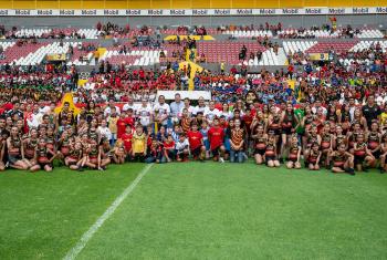 GUADALAJARA. Jalisco (1/Abril/2024). -Durante la tarde de este lunes, la cancha del Monumental presenció el arranque de la Copa Leones en su Octava edición donde estará conformado por equipos de Occidente, así como la invitación de equipos Sub14, integrado por un programa de competencia de Futbol Down.