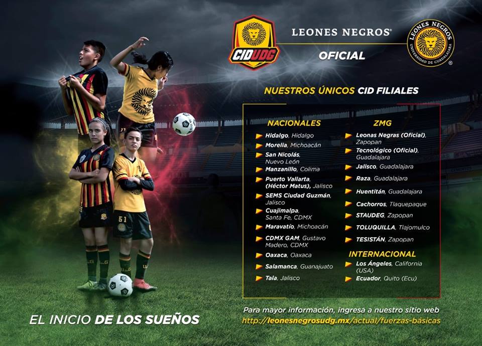 De esta manera, Leones Negros continua incrementando su presencia y ya son 23 los Centros de Iniciación Deportiva; 9 a lo largo de la Zona Metropolitana de Guadalajara, 3 más ubicados en el interior del estado de Jalisco, 9 en diferentes partes de la República y 2 internacionales, en Los Ángeles, California y Quito, Ecuador.