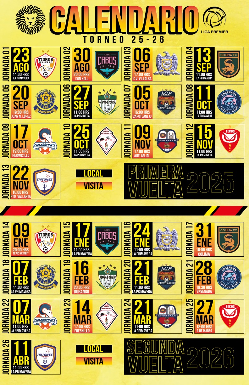GUADALAJARA, Jalisco (31/Julio/2025).- La Liga Premier dio a conocer su calendario para la Temporada 2025-2026 por lo que los Leones Negros Premier ya conocen el camino a andar en la Serie A, mismo que iniciará el próximo sábado 23 de agosto en el Club La Primavera.